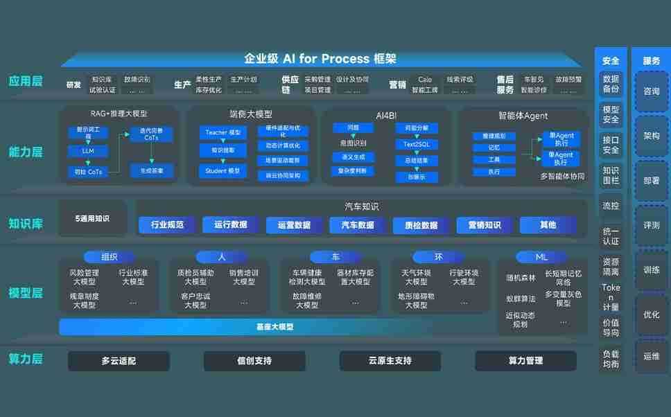 端到端的一站式AI工作空间深度融合了从企业战略规划到日常经营的全流程业务板块,,定向解决车企内部领域多、、、部门多、、链条长、、、场景碎片化等难题,,,支持车企快速构建以AI为核心的生产力写作体系,,实现任务执行与AI能力的无缝集成与交互