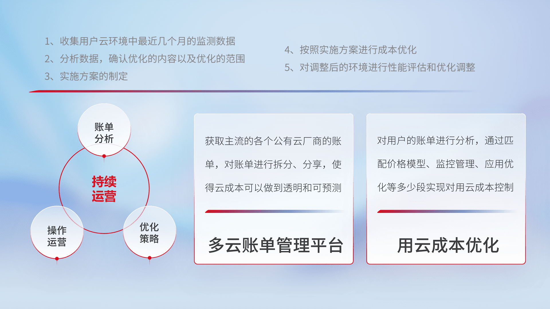 运用智能化工具分析云资源,,提供日常费用可视化工具,,自动账单拆分,,,成本优化云上费用,,,,降本增效。。